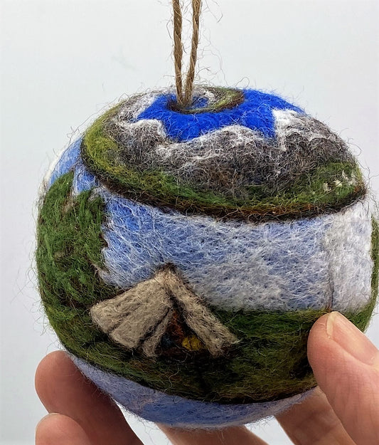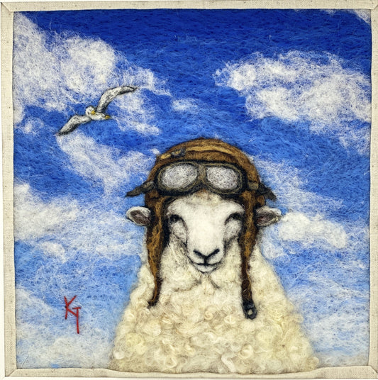 Boats, Bunting and the Bridge, Richmond, needle felted fibre painting