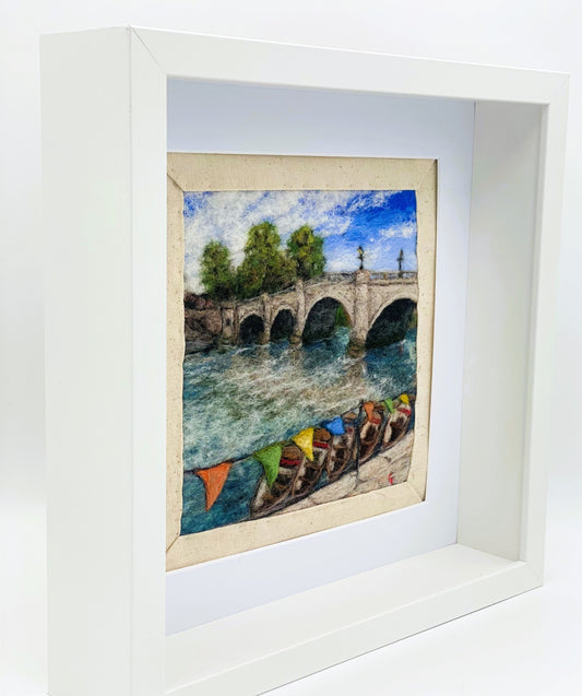 Boats, Bunting and the Bridge, Richmond, needle felted fibre painting