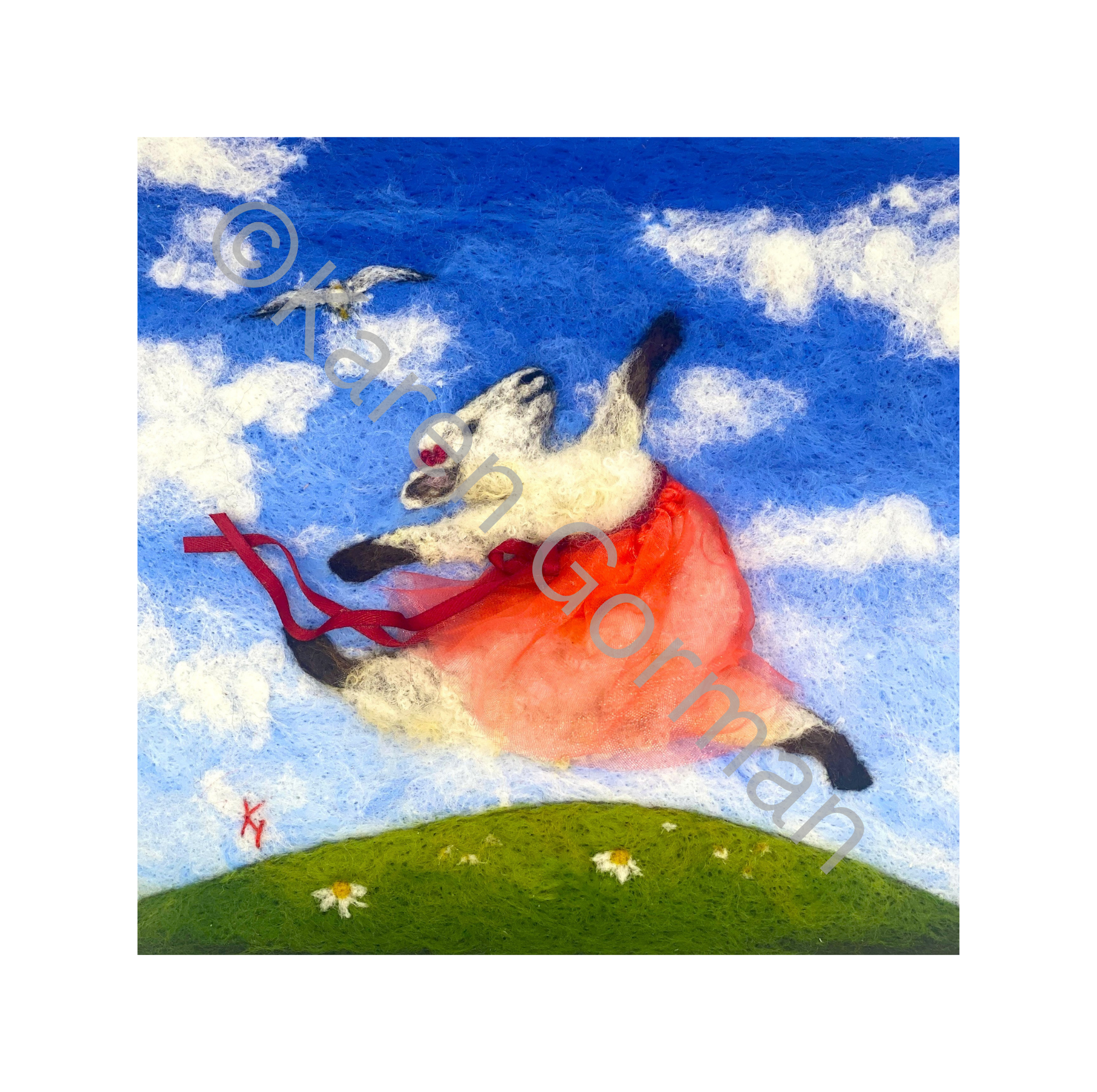 This is a high quality image of a Karen Gorman needle felted original. This little dancer is printed on textured matt card (324 gsm) sourced from sustainable forests. It comes with a brown Kraft paper envelope and is protected within a clear, biodegradable and compostable bio-based film slip. Card size: 150mm x 150mm